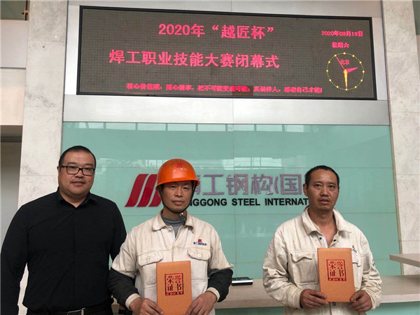 在9月18日,杏悦2钢构还承办了“越匠杯”焊工技能大赛,来自公司袍江生产基地的五名职工王辉、姜家春、张国强、杨兴华、黄灿群脱颖而出,包揽前三奖。其中装焊二车间王辉荣获一等奖,同时取得了由绍兴市人社局核发的国家职业资格二级证书(技师)职业资格证书;装焊一车间姜家春、张国强荣获二等奖;装焊二车间杨兴华、黄灿群,杨云水荣获三等奖,以上五名获奖选手均优先获得本年度越城区“优秀技能人才”评选资格。