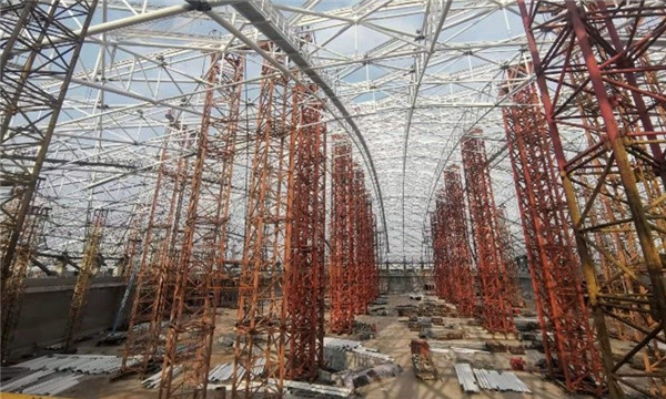 乐园位于建筑中央核心区,且下方施工园地面积小于钢屋盖投影面积,施工区域与场外仅有北侧预留进出通道,园地狭小,施工组织难度大。为解决园地对施工组织的影响我司在项目中运用了基于BIM的信息化管理技术。其中在项目筹谋阶段通过信息化动态园地组织模拟技术对施工过程的进行模拟,确定合理的施工顺序和动态门路园地规划,为后续施工开展提供可靠依据。另外通过信息化物料供货平台和物流管理平台对现场的质料储蓄进行严格控制,对物料组织进行实时跟踪和信息化反馈、评价及预警,制止现场供货不及或堆料过多的情况。通过上述多项信息化技术实现在弹丸之地中对每一寸空间的有效利用。